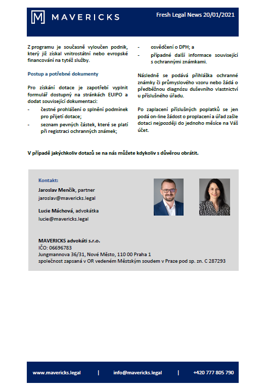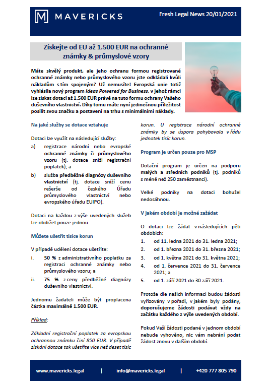 Získejte od EU až 1.500 EUR na ochranné známky & průmyslové vzory.